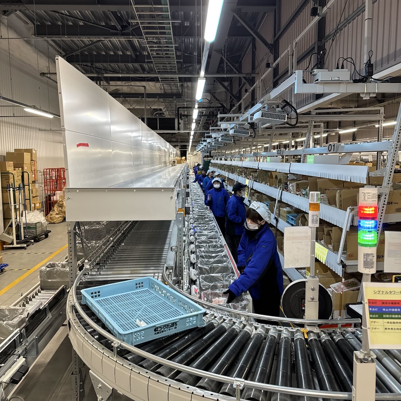 冷凍品だけで1日に約19万点を仕分けする、日本最大級のフローズンセンターです。冷凍品は低い温度を維持し、迅速な仕分け作業が必要になります。扱っている商品数を増やし、配送先の軒数を増やすことは設備的にも人材的にも、非常に大変です。それを実現できているのは素晴らしいですね。