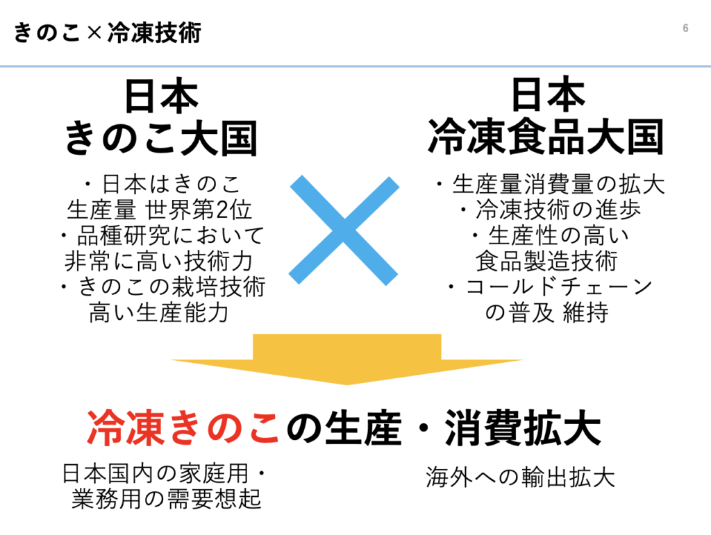 きのこ技術が高く、冷凍技術の高い日本が今後の「冷凍きのこ」の可能性を語りました。